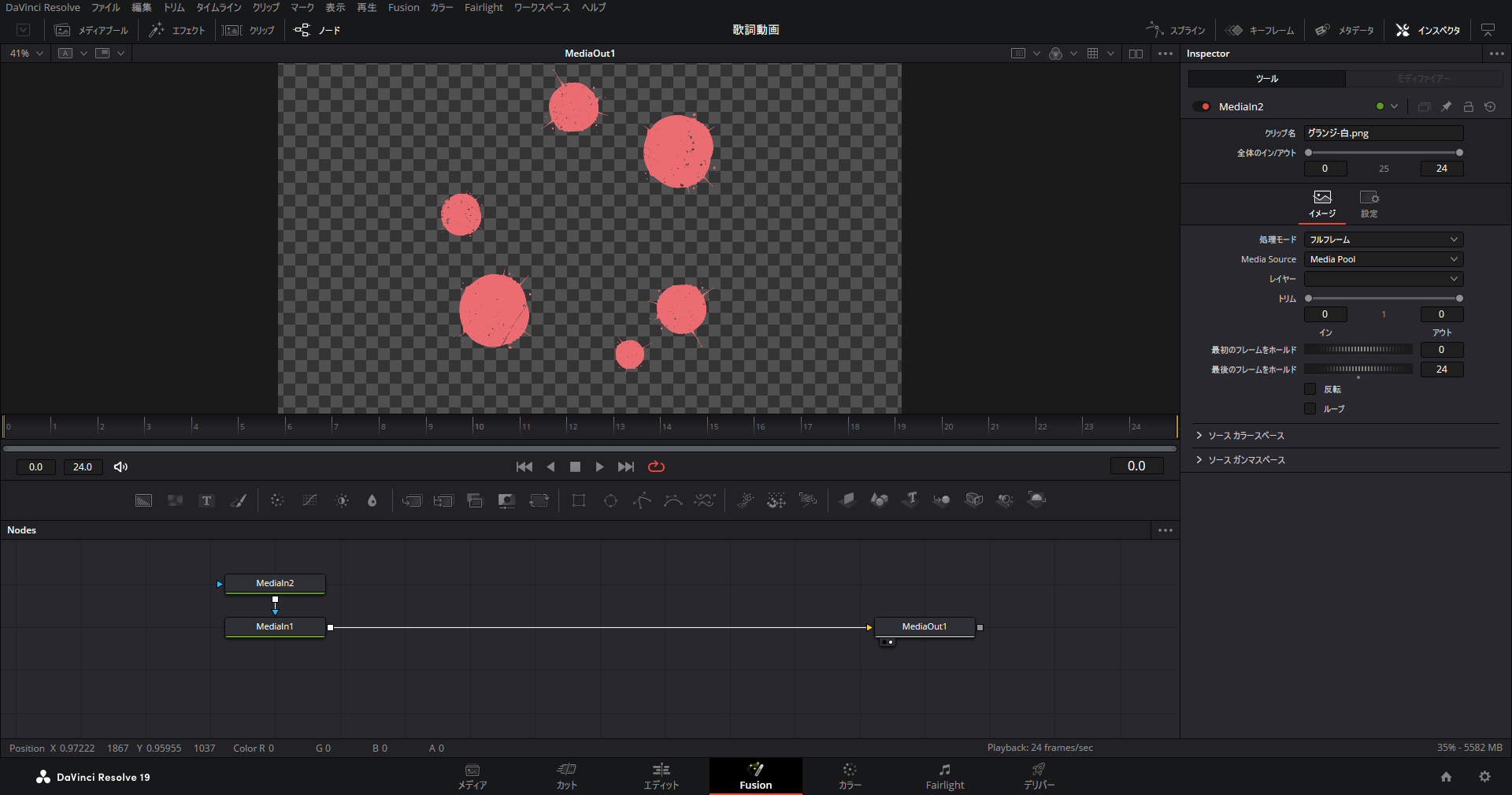ブラーがかかった状態から始まってしまうのを、Fusionページで編集する方法がわからなかったので、