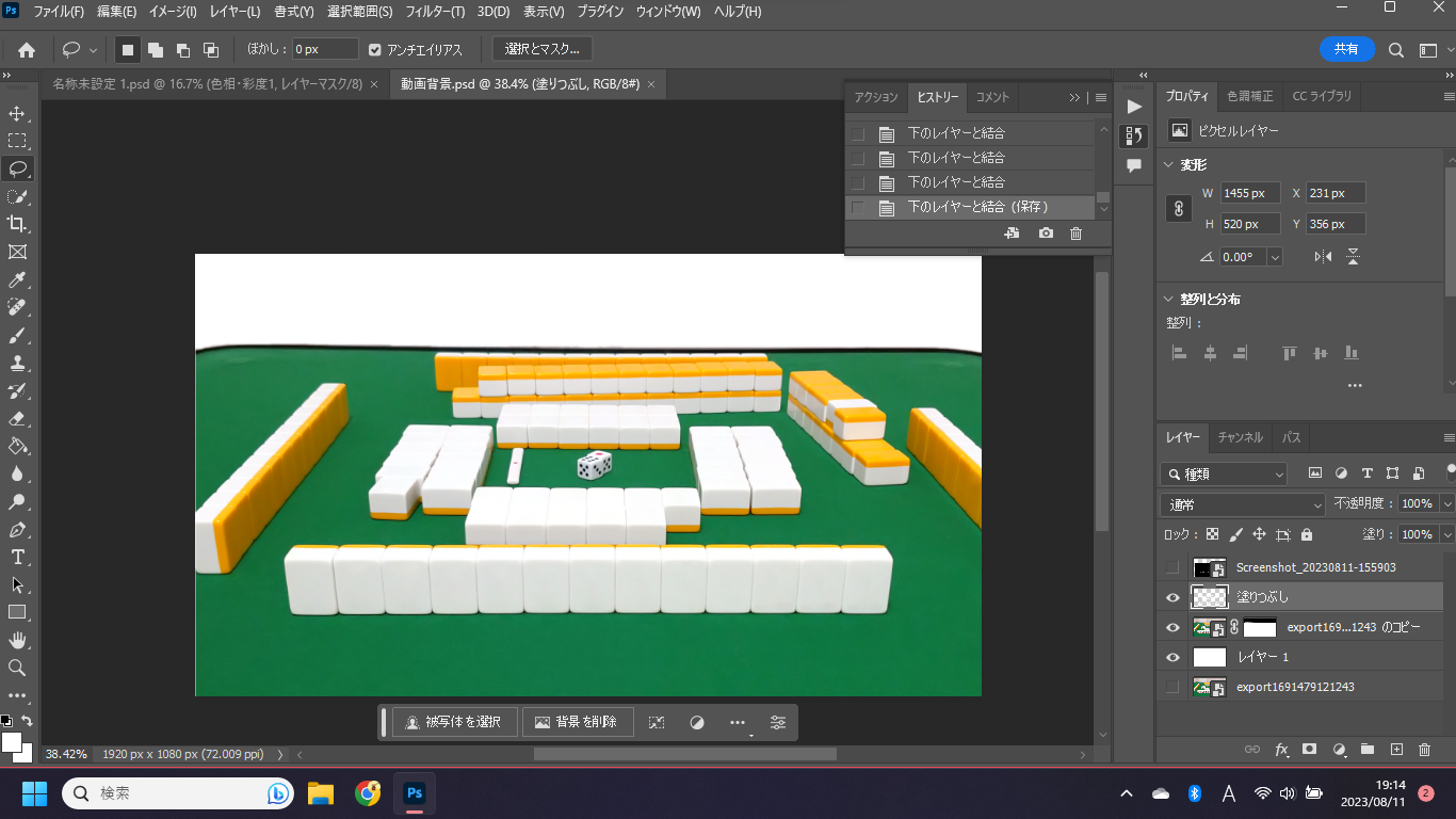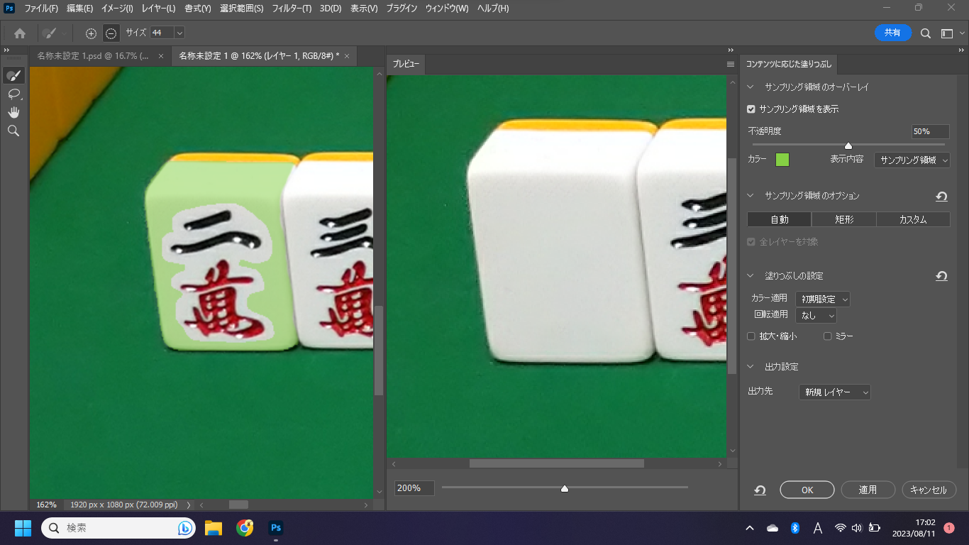 牌の文字部分を、スカジャンの柄を抜いたのと同じ”コンテンツに応じた塗りつぶし”でこつこつ。