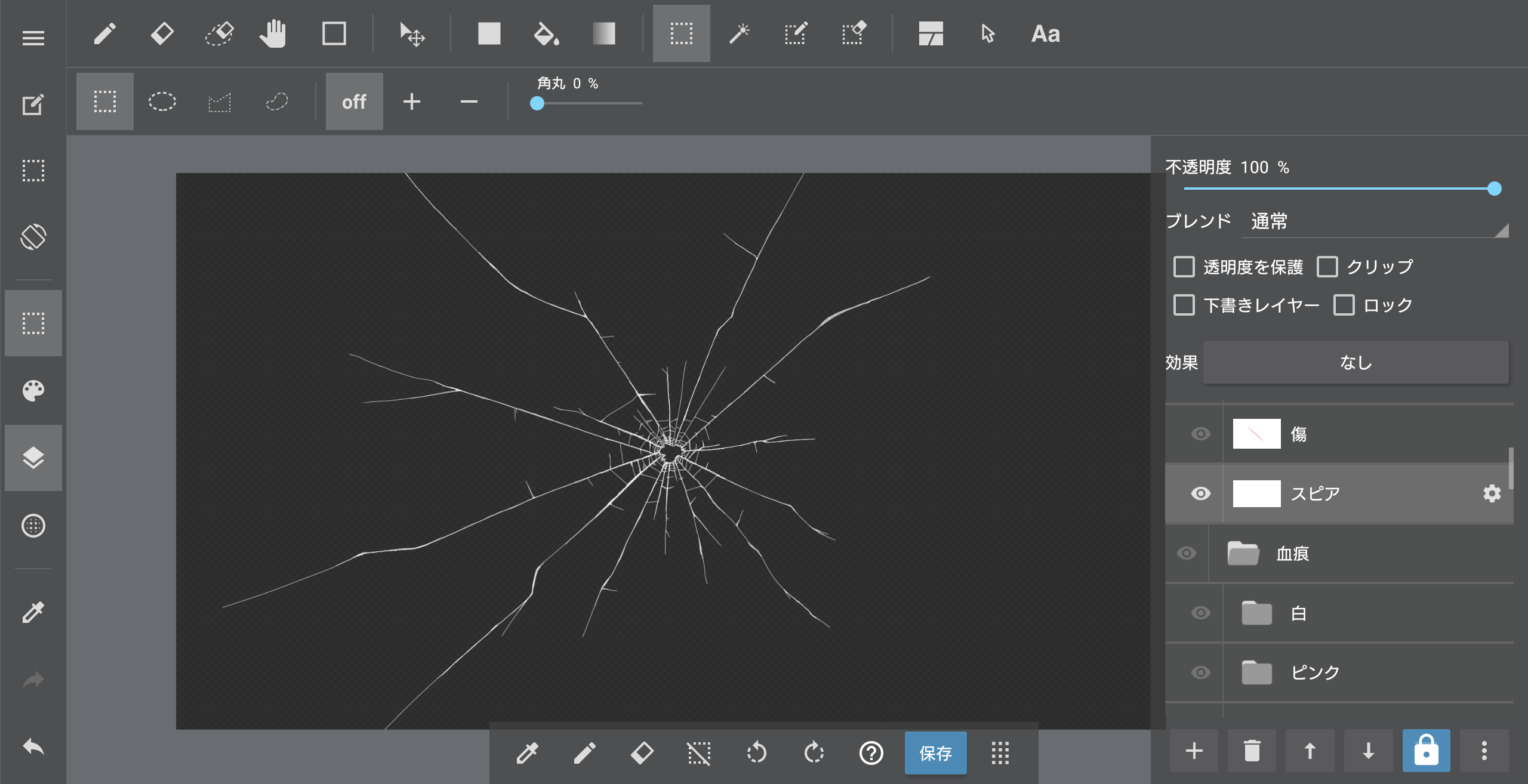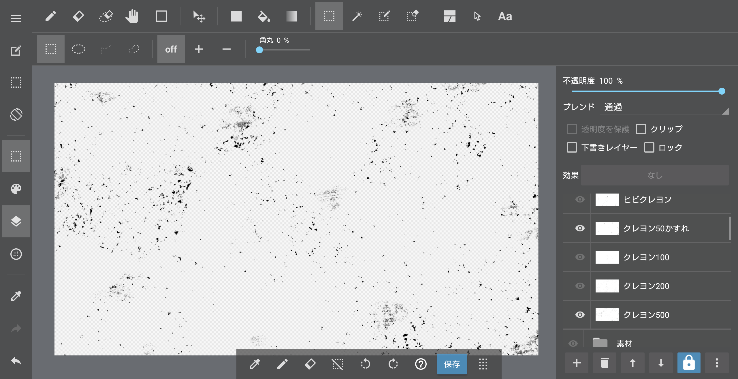 また、ペンの色を透明にして、サイズを変えて、書いた線ごとランダムに消しています。